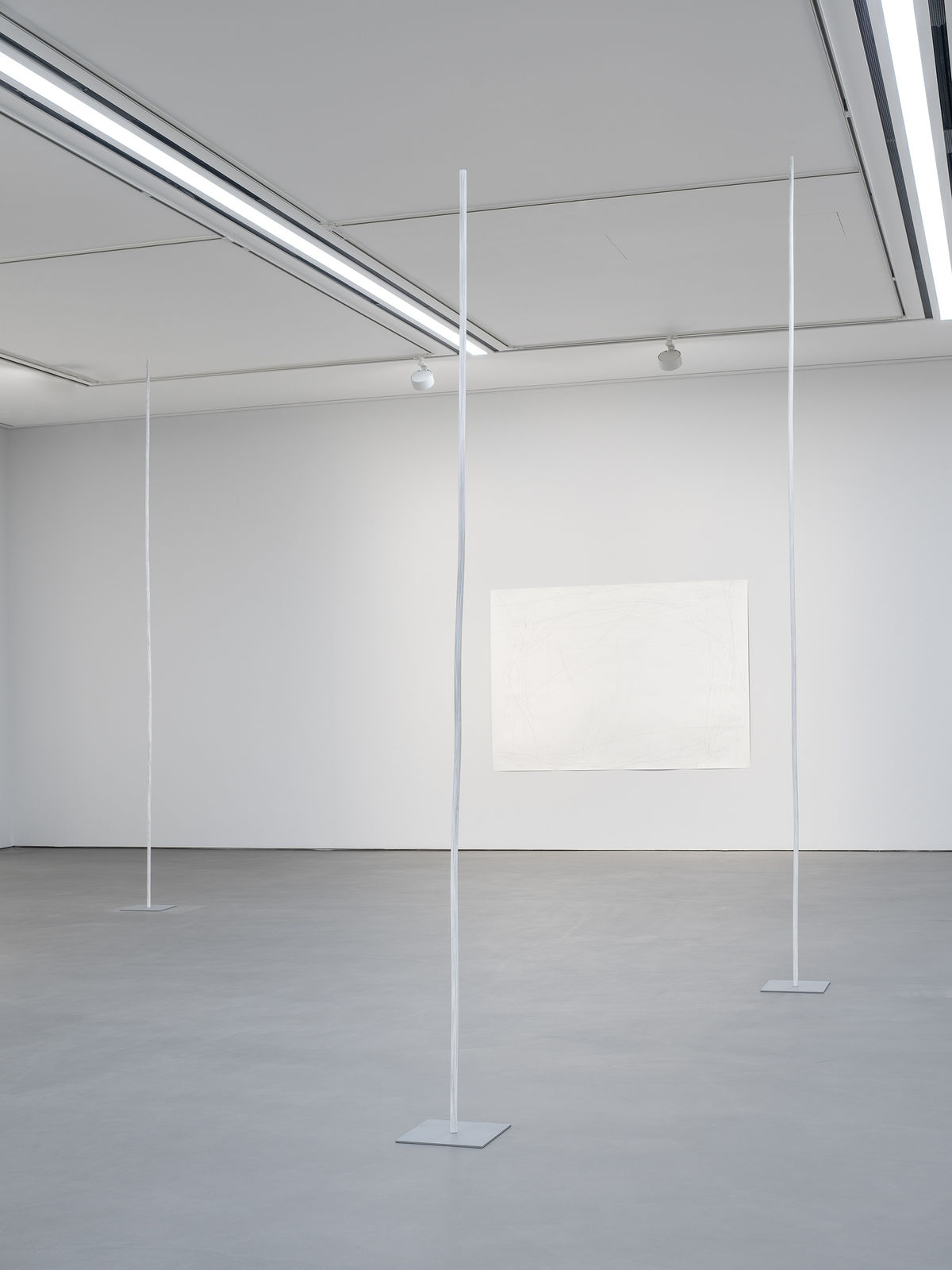 "KIM Inbai’s sculpture introduces multiple curved, vertical, and nearly two-dimensional lines into a three-dimensional exhibition space, as if they were streaks of rain suspended in time." - Doosan Gallery